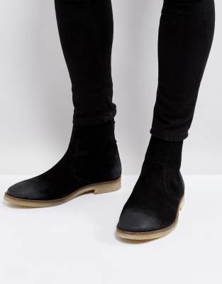 12:22 PMASOS Chelsea Boots In Black Suede With Back Zip Detail With Natural Sole